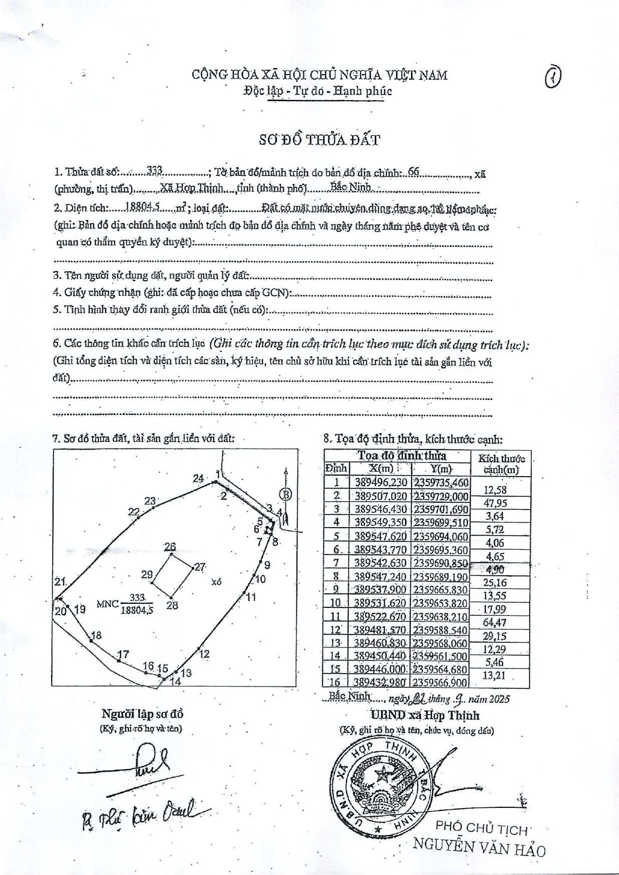 1. Người có tài sản: UBND xã Hợp Thịnh, tỉnh Bắc Ninh